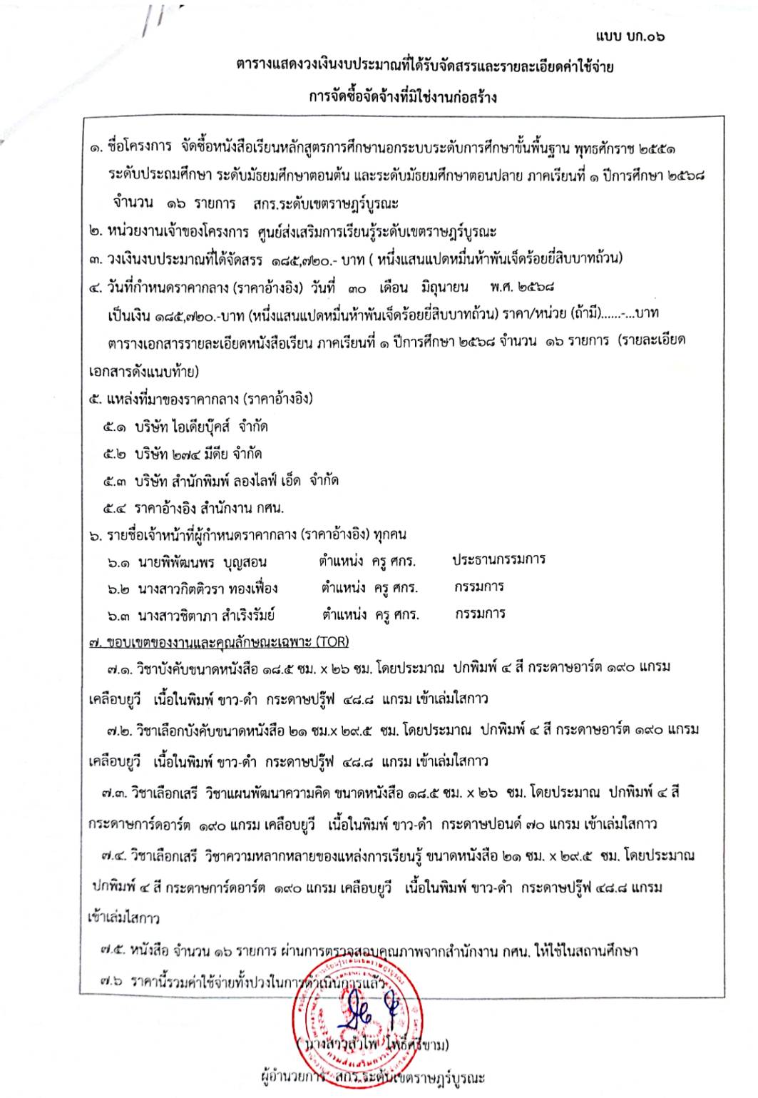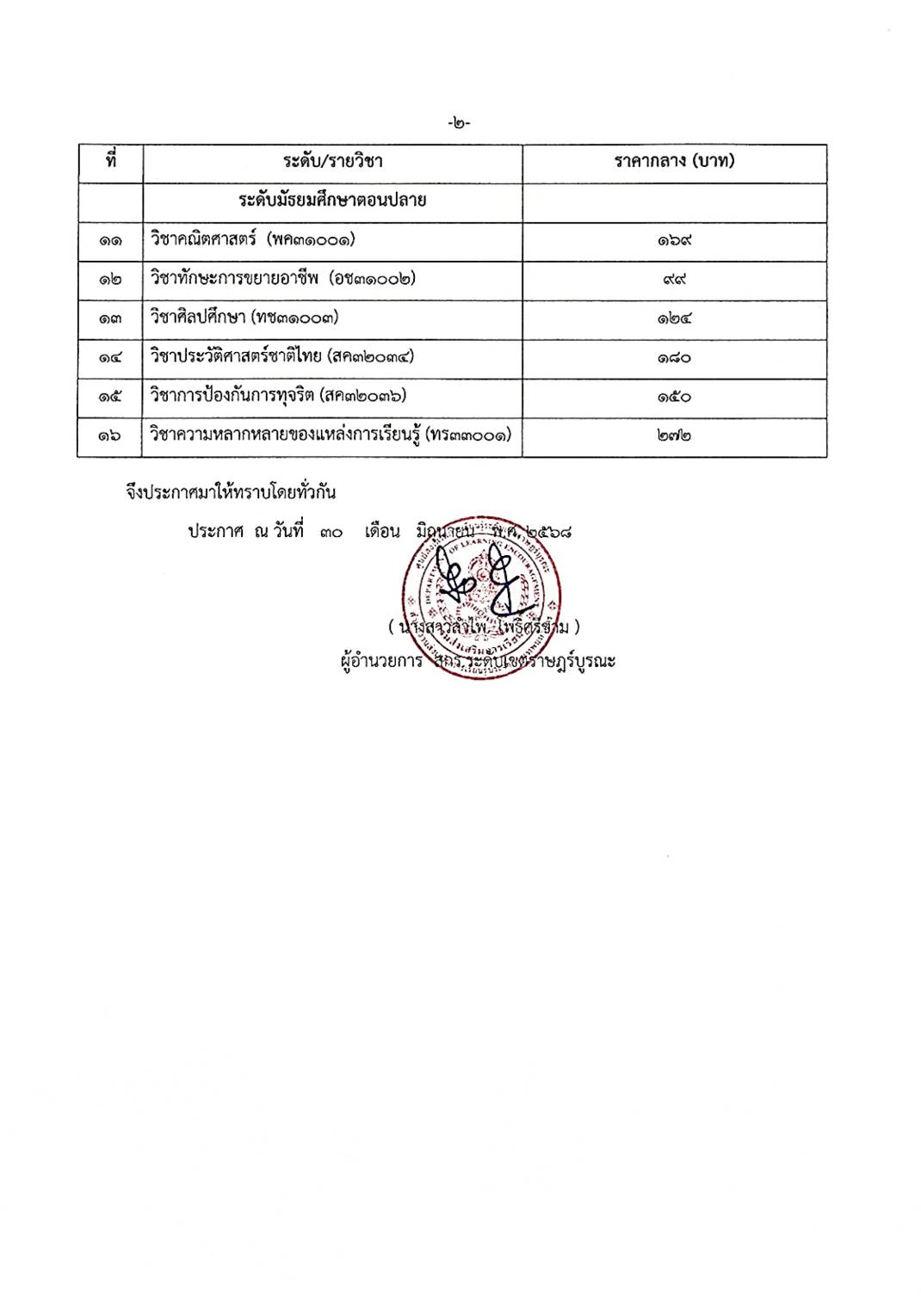 ประกาศ ราคากลางหนังสือเรียนหลักสูตรการศึกษานอกระบบ ระดับการศึกษาขั้นพื้นฐาน